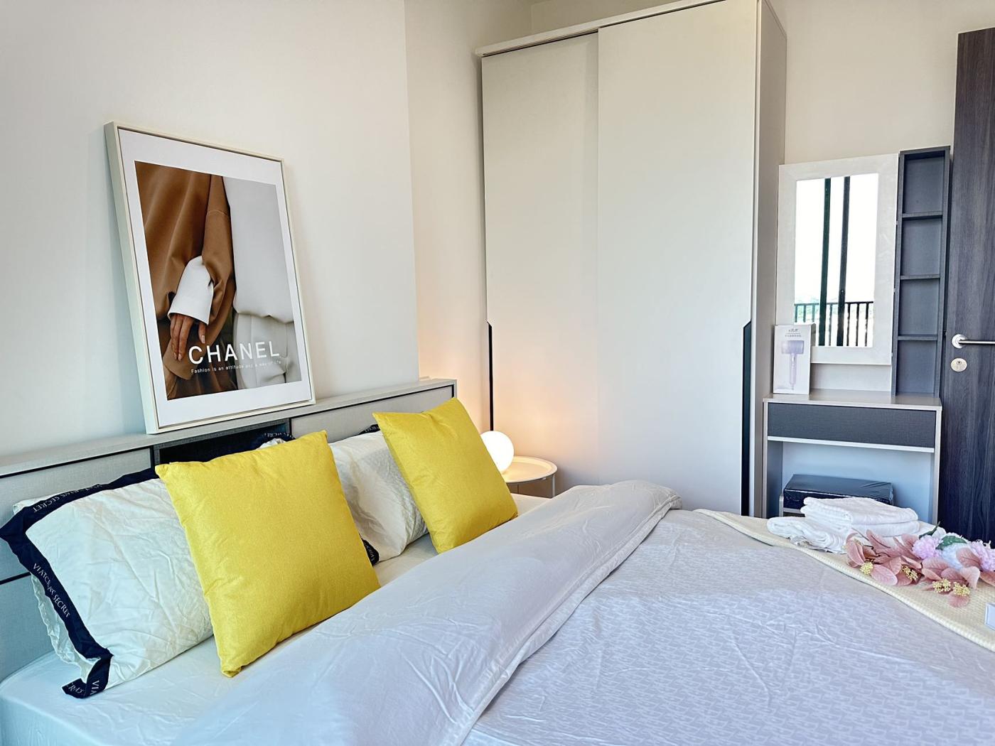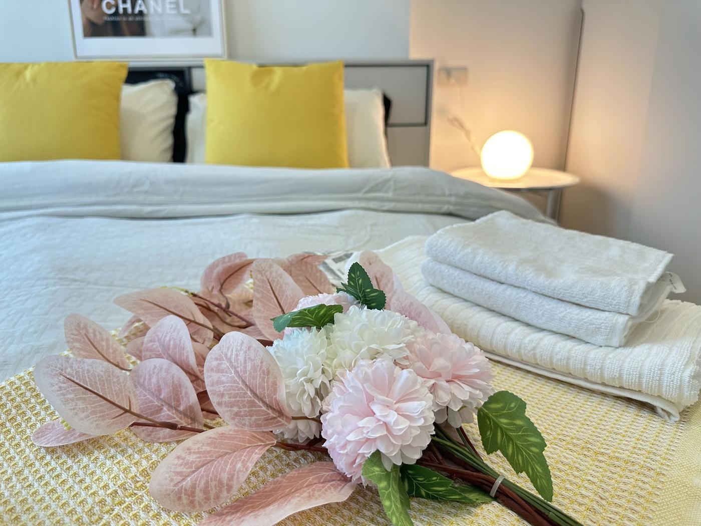 卧室设计注重隐私和舒适。房间内有一张大床,床头配有床头柜和床头灯,为夜间阅读提供方便。床上用品一般选择柔和的色调,增加房间的温馨感。卧室内还配有一个衣柜,提供充足的储物空间。一些房型的卧室可能会有一面大窗户或落地窗,既能提供良好的自然光线,又能欣赏城市美景。