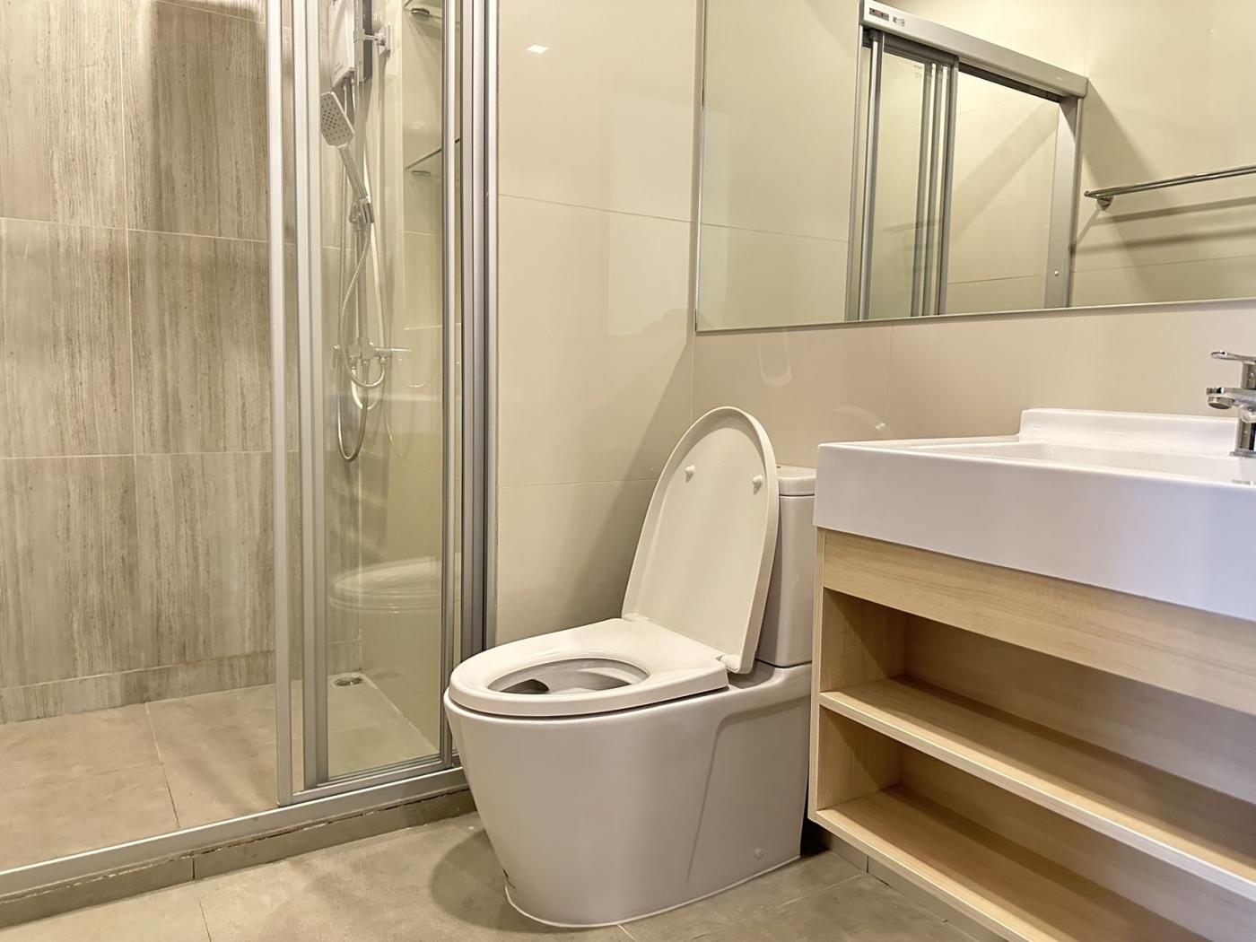 浴室设计现代,配有高质量的卫浴设备。浴室内有淋浴间,部分高级房型可能配有浴缸。墙面和地板大多采用防滑瓷砖,既安全又易于清洁。洗手台上有一个大镜子和储物柜,方便放置洗漱用品。浴室内还配有基本的卫浴设施,如马桶和毛巾架。