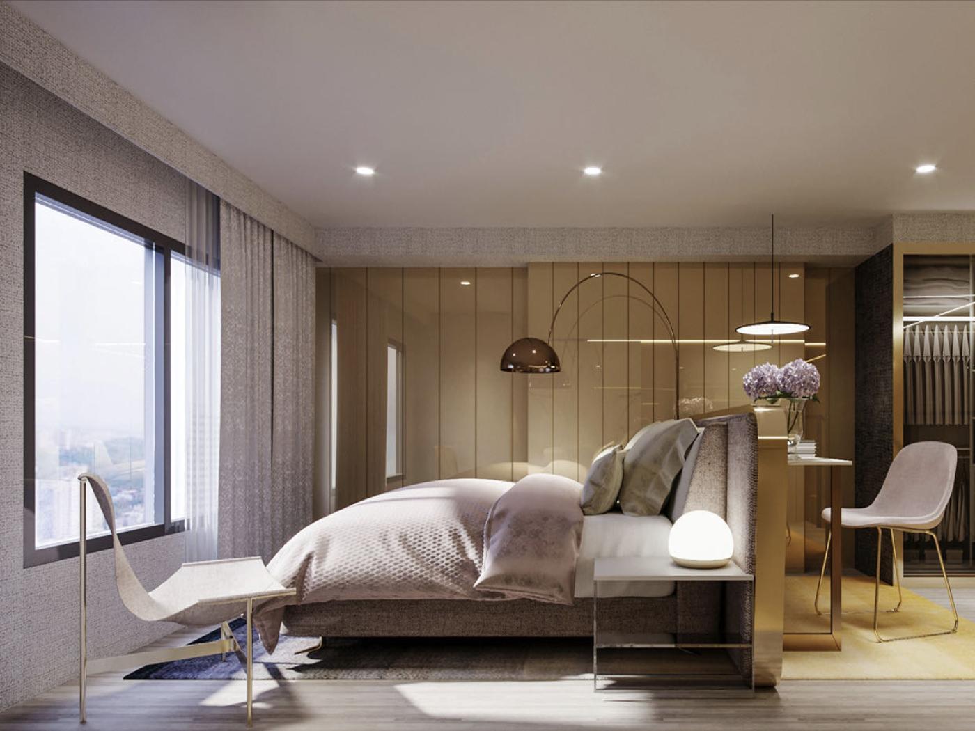 卧室设计注重隐私和舒适。房间内有一张大床,床头配有床头柜和床头灯,为夜间阅读提供方便。床上用品一般选择柔和的色调,增加房间的温馨感。卧室内还配有一个衣柜,提供充足的储物空间。一些房型的卧室可能会有一面大窗户或落地窗,既能提供良好的自然光线,又能欣赏城市美景。